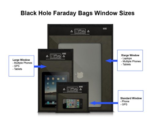 Black Hole Faraday Bag - RF Signal Isolation for Forensics, Large Window Size - Signal Blocking, Anti-tracking, Anti-spying, Radiation protection for Cell Phones, Key Fobs and Credit Cards
