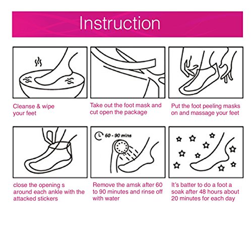 ✔ EASY TO USE: Begin by wiping your feet clean. Remove one mask from the package. Apply to your foot and seal, then relax for an hour while the peel kit goes to work. You can remove after an hour and see immediate results.
