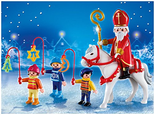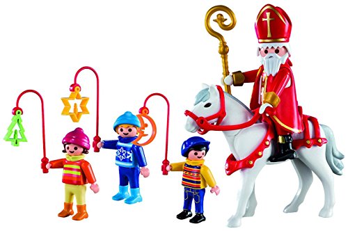 Show off your holiday spirit with the Christmas Parade. Set includes three child figures, St. Nicholas figure, horse, holiday lanterns, and other accessories. Recommended for ages four to ten.