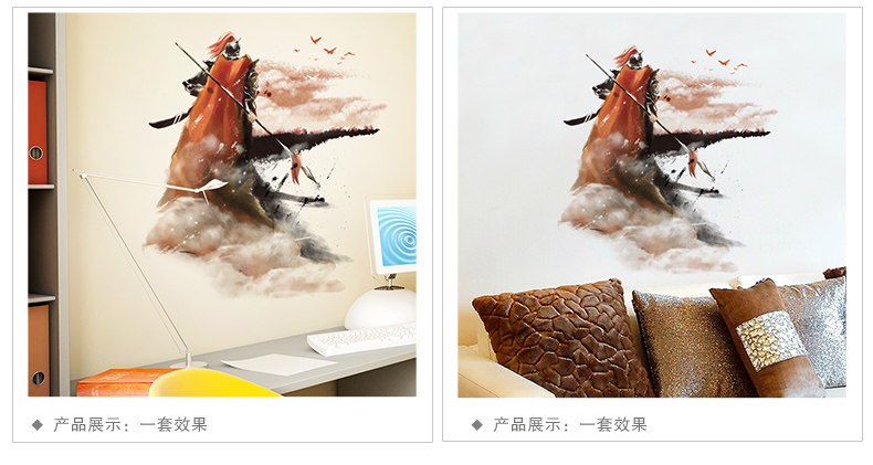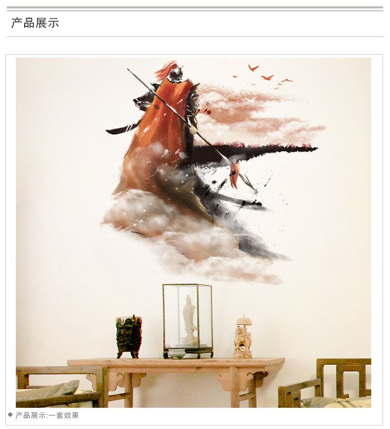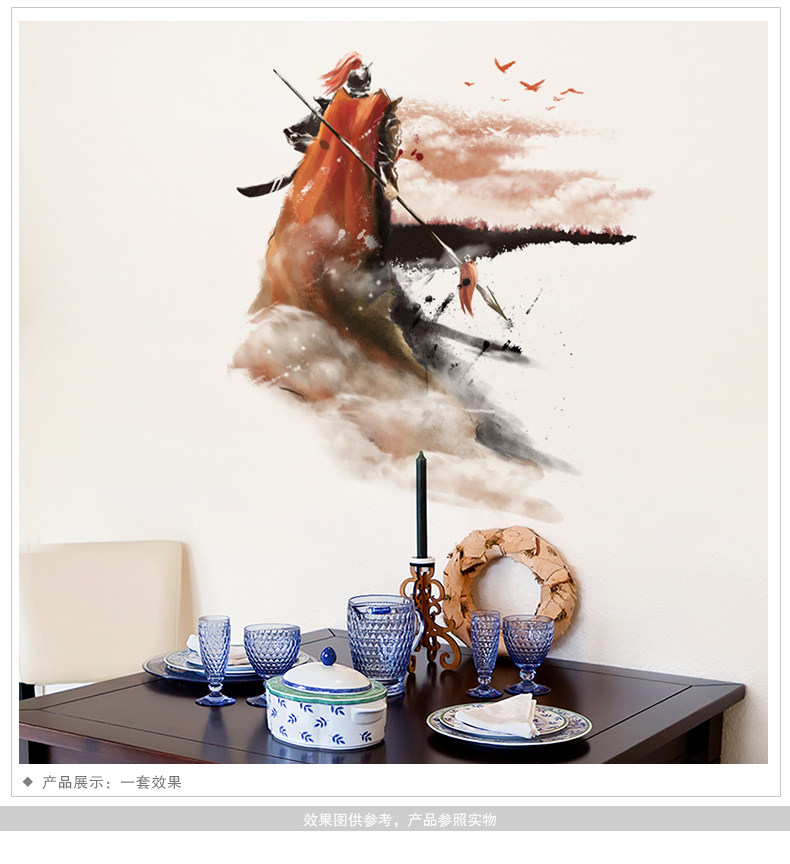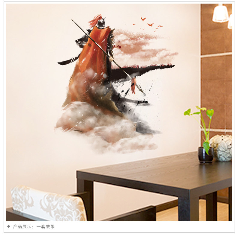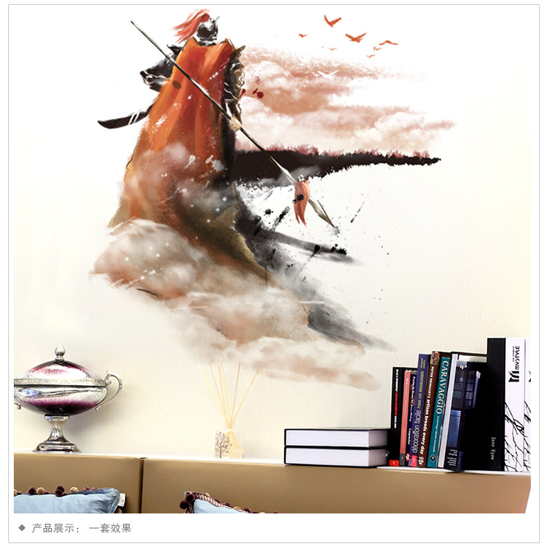 水墨风格将军自粘壁纸墙贴纸贴画海报卧室客厅房间装饰品背景墙
