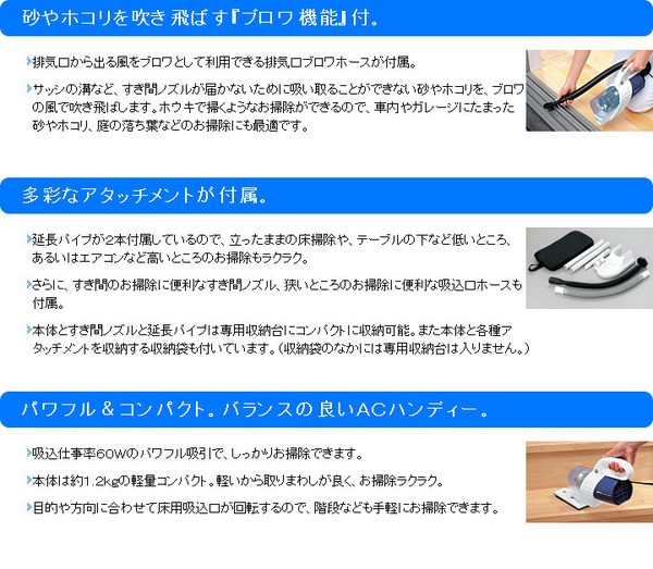 ●吹き付けてホコリヤごみを飛ばすブロワ機能。