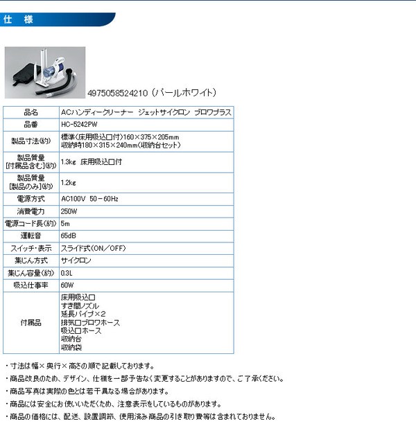 TWINBIRD(ツインバード) ACハンディークリーナージェットサイクロン ブロワプラス HC-5242PW