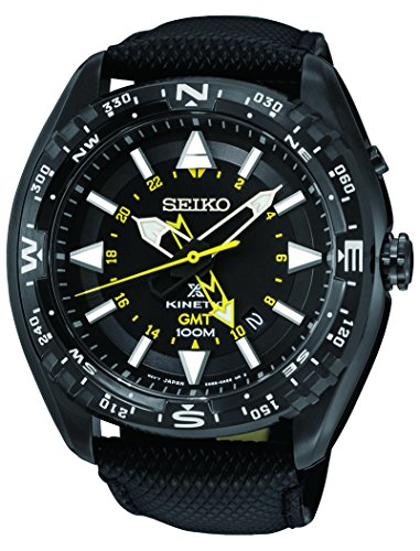 -. Title : Seiko Kinetic GMT SS Black Leather Strap Black Dial Men's Watch SUN057