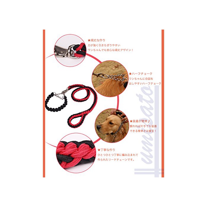 Umisato미래 집 컬러풀 나오 멋있 귀여운 튼튼함 이 대형견 중형견 용뜨기 타입 리드 목걸이 세트 (레드×블랙, L)