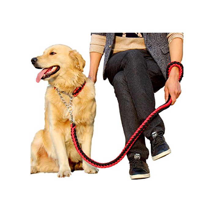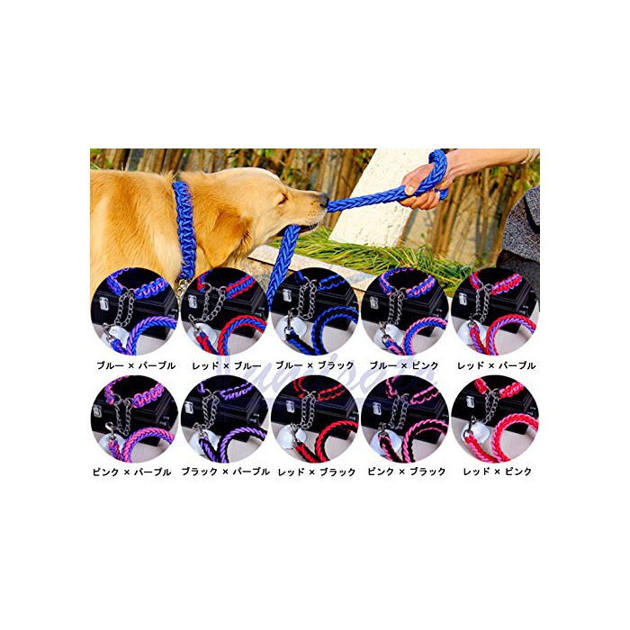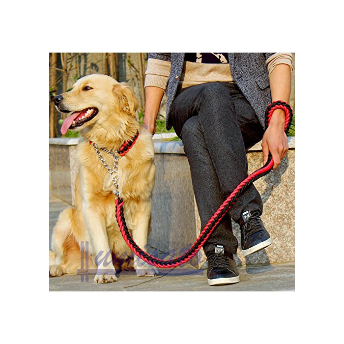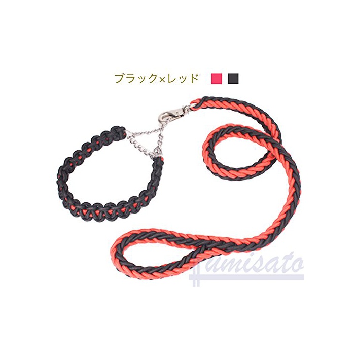 원본상품명:カラフル で かっこいい かわいい 頑丈 な 大型犬 中型犬 用 編み タイプ リ?ド 首輪 セット (レッド×ブラック, L)