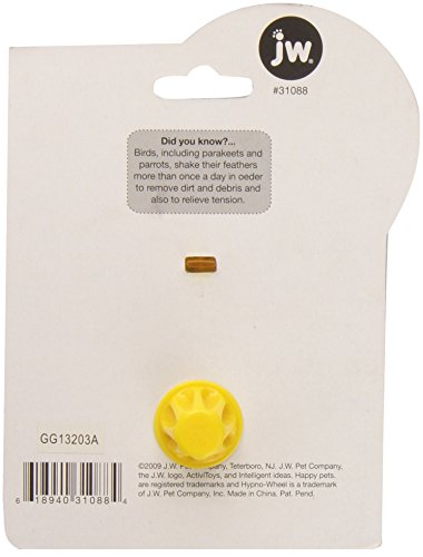 -. Binding : Misc. -. Brand : JW Pet -. EAN : 0618940310884 -. Feature : Hypnotic design / Features ringing bell and two silver beads which rattle around inside of the wheel / Stimulates your bird and encourages play / Designed for a bird's well-being / Suitable for parakeets, cockatiels and other similar size birds -. IsAutographed : 0 -. IsMemorabilia : 0 -. Label : JW Pet Company -. Manufacturer : JW Pet Company -. Model : 31088 -. MPN : 31088 -. NumberOfItems : 1 -. PackageQuantity : 1 -. PartNumber : 31088 -. ProductGroup : Pet Products -. ProductTypeName : PET_SUPPLIES -. Publisher : JW Pet Company -. Size : Large -. Studio : JW Pet Company -. Title : JW Pet Company Activitoys Hypno Wheel Bird Toy -. UPC : 618940310884 -. Warranty : no