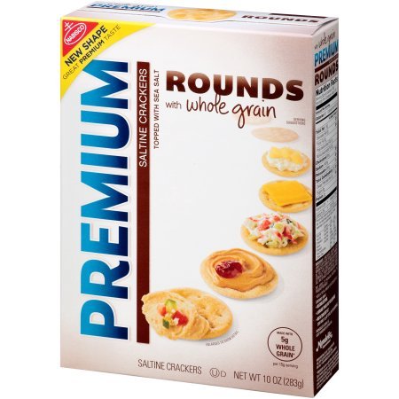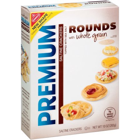-. Binding : Misc. -. Brand : Nabisco -. EAN : 0651208747060 -. Feature : Topped with sea salt. / 5g whole grain per serving. / Fat free saltine crackers, no cholesterol. / no trans fat. / No saturated fat Kosher. -. IsAdultProduct : 0 -. Label : Nabisco -. LegalDisclaimer : Actual product packaging and materials may contain more and different information than what is shown on our website. We recommend that you do not rely solely on the information presented and that you always read labels, warnings, and directions before using or consuming a product. -. Manufacturer : Nabisco -. PackageQuantity : 12 -. ProductGroup : Grocery -. ProductTypeName : GROCERY -. Publisher : Nabisco -. Studio : Nabisco -. Title : PACK OF 12 - Nabisco Premium Rounds Whole Grain Saltine Crackers, 10 oz -. UPC : 651208747060