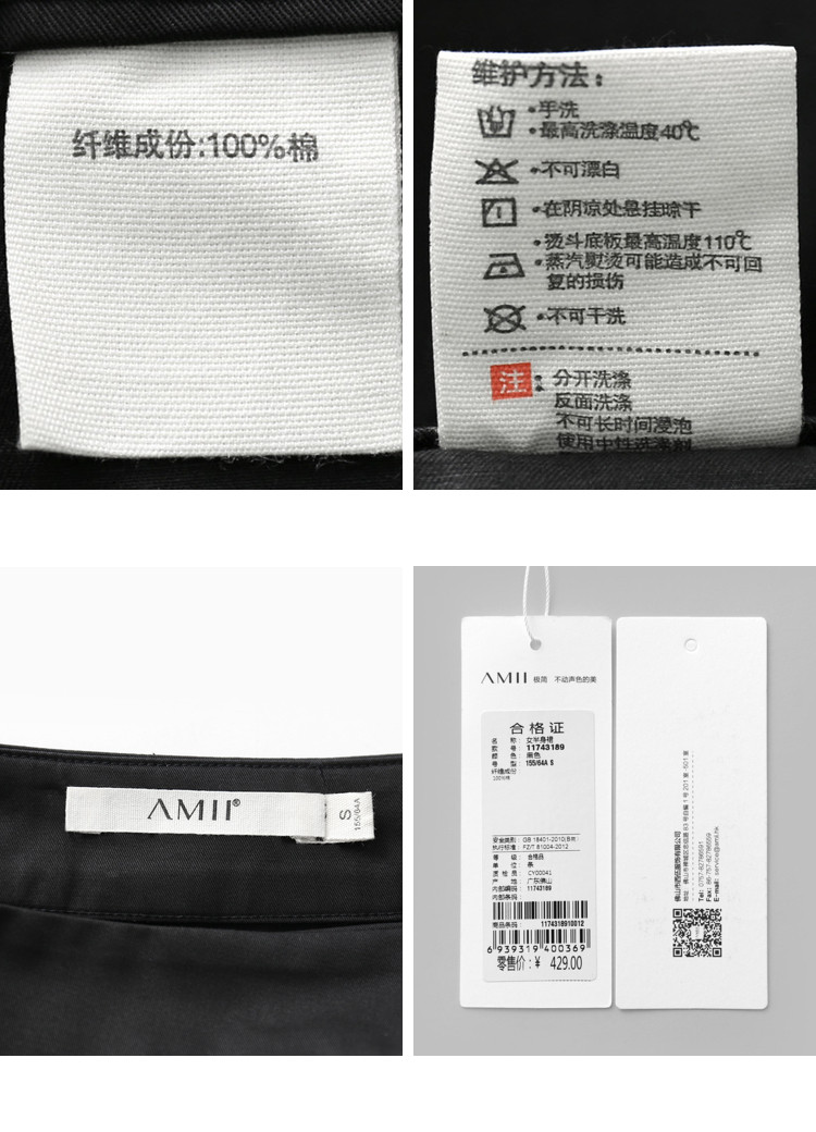 | 洗涤标准: | 悬挂晾干不可干洗不可漂白不可浸泡40℃以下手洗110℃以下垫布熨烫 |