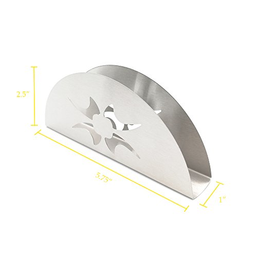 DECORATIVE STORAGE SPACE- Alamic half round design napkin holder provides decorative storage space for napkins, stores napkins vertically and grips to keep them in place.