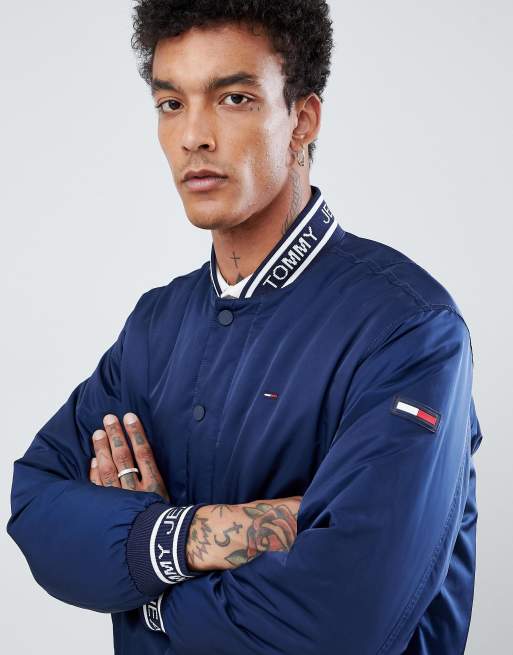 Tommy Jeans classic college bomber logo trim in navy