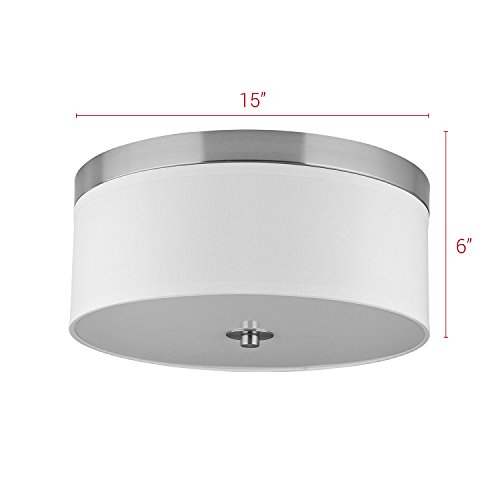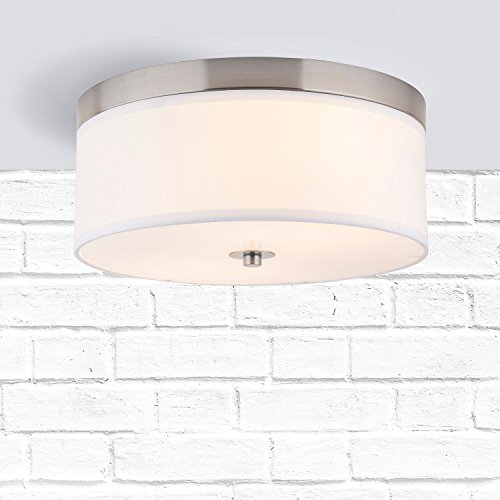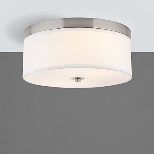 Linea di Liara Occhio 15-Inch Two-Light Ceiling Fixture, Brushed Nickel with a White Fabric Shade, Flushmount LL-C252-BN