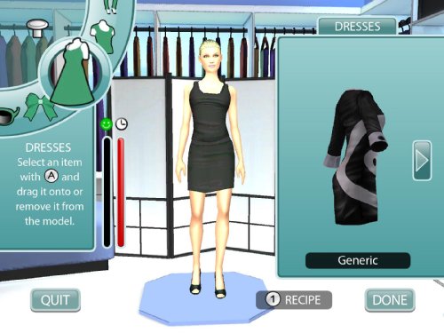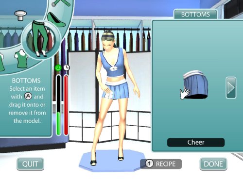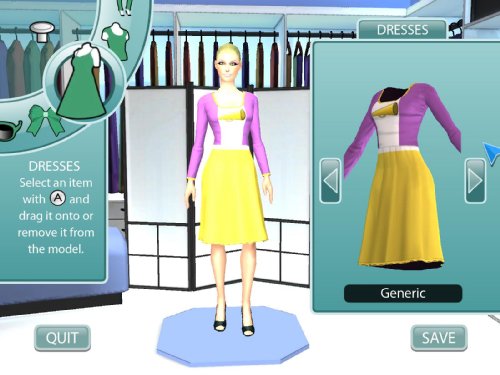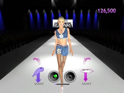 • Model your own designs on the runway using the Wii Remote and optional Wii Balance Board to walk, strut, and pose.