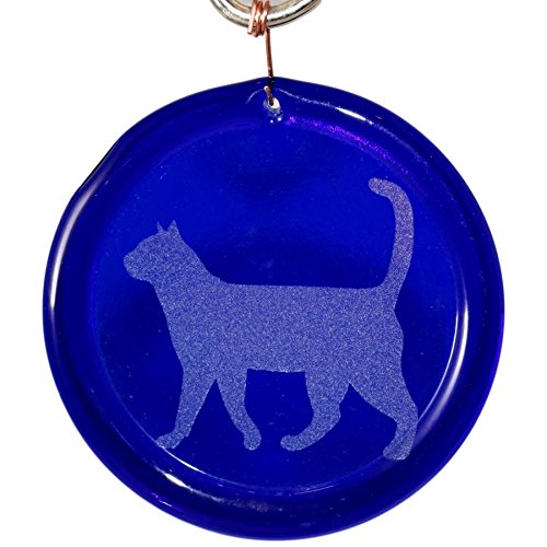 4-Inch Etched Walking Cat Silhouette Suncatcher In Cobalt Blue from our Animal And Creature Collection - Made In the USA. A Great Gift, Colorful Suncatchers Bring a Room or View To Life.
