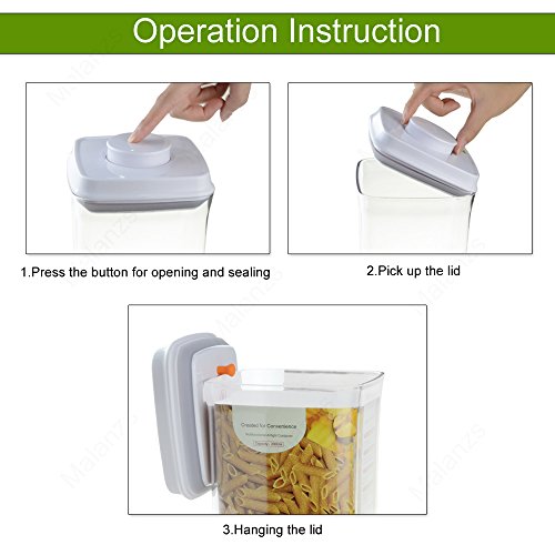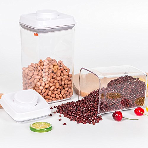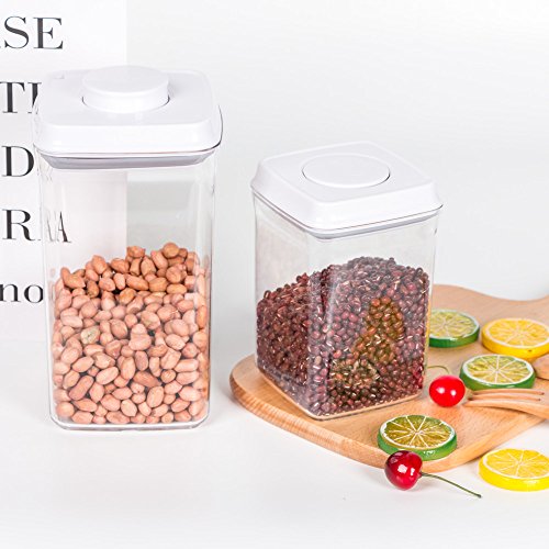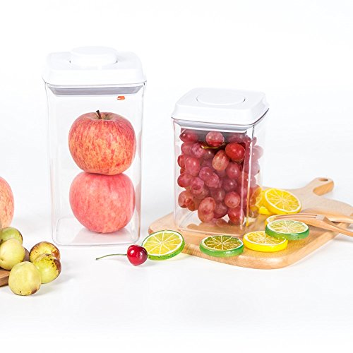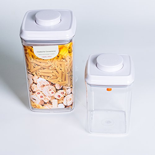 Pop Top Food Storage Containers with Airtight Rubber Seal and One Touch Push Button Locking Cover Great For Pet Food Milk Power Fruit - Unique Lid Hook - 2 Piece - 2.11QT/0.9QT - by Ankou