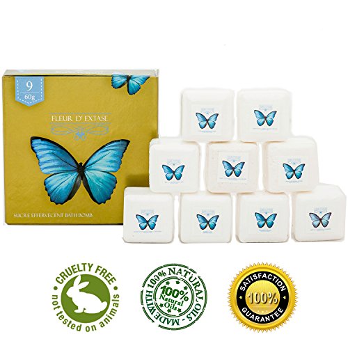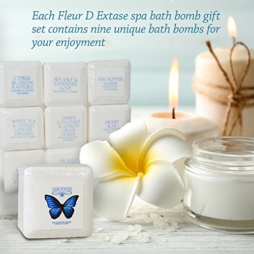 SET OF 9 BATH BOMBS IN EACH GIFT BOX SET - Each Fleur D Extase spa bath bomb gift set contains 9 x 2 oz (60 grams) bath bombs for your enjoyment