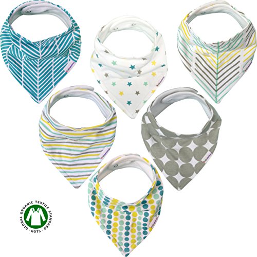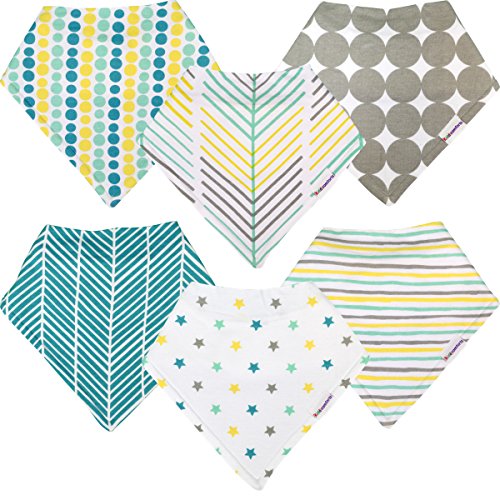 -. Title : 6 Absorbent Baby Bandana Drool Bibs for Boys & Girls, 100% Organic Cotton Front, Great Baby Gifts, Extra Absorbent, Soft, Adjustable & Unisex
