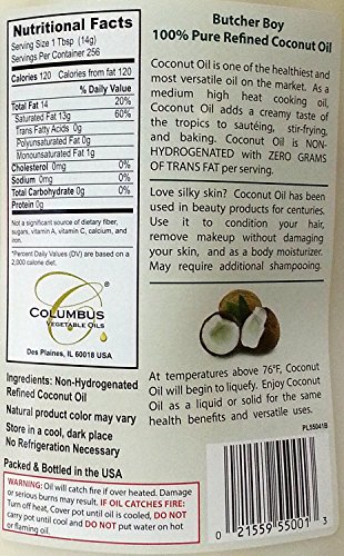 Butcher Boy 76°f 100% Pure Refined Coconut Oil 1 Gallon