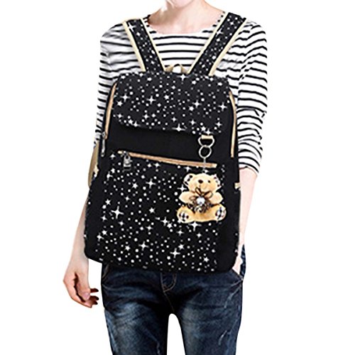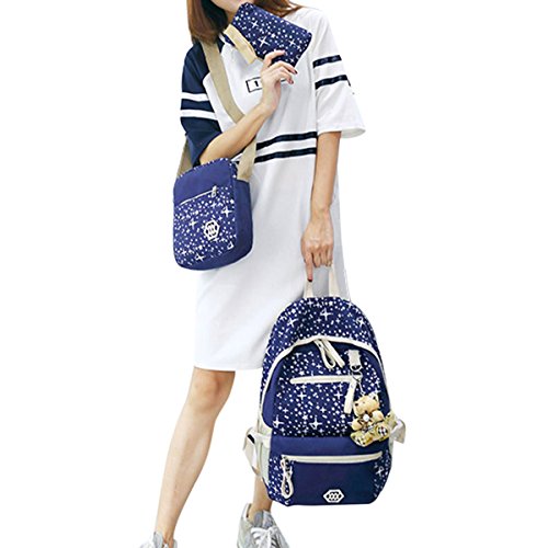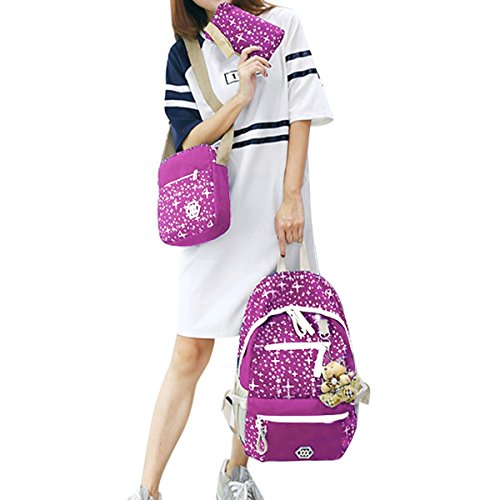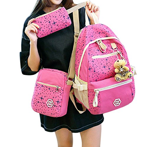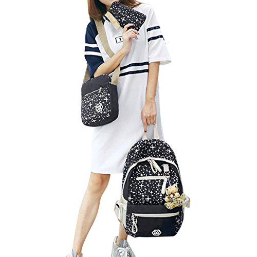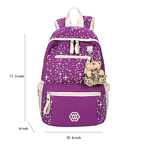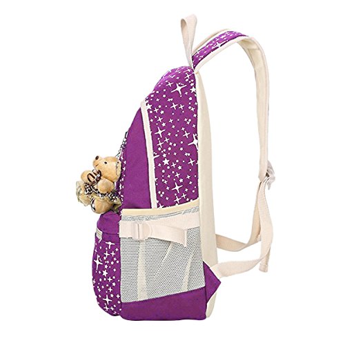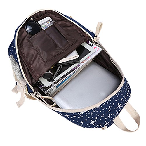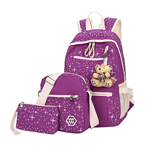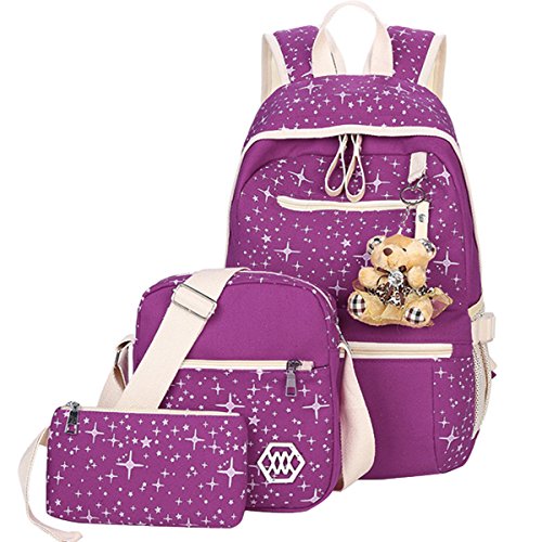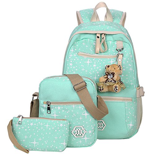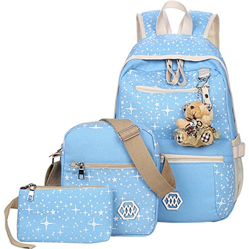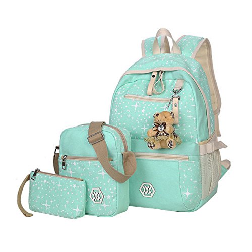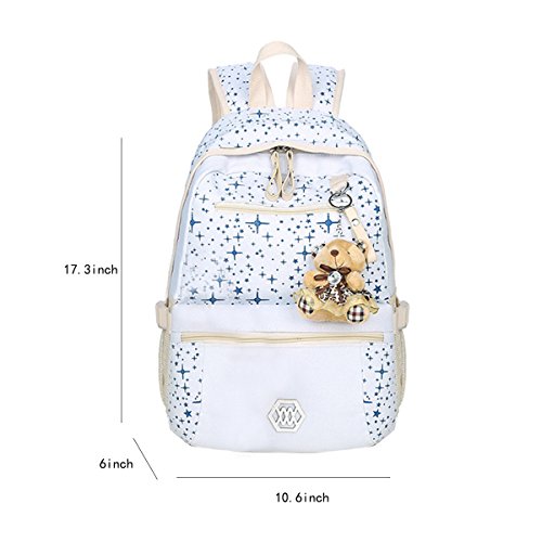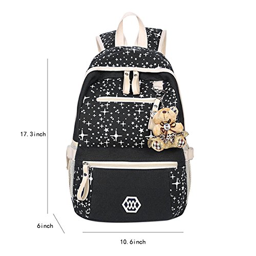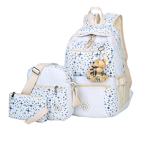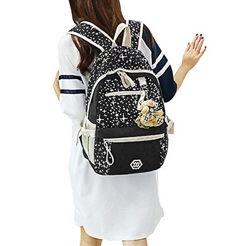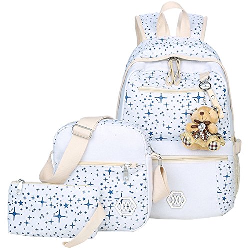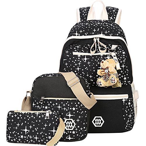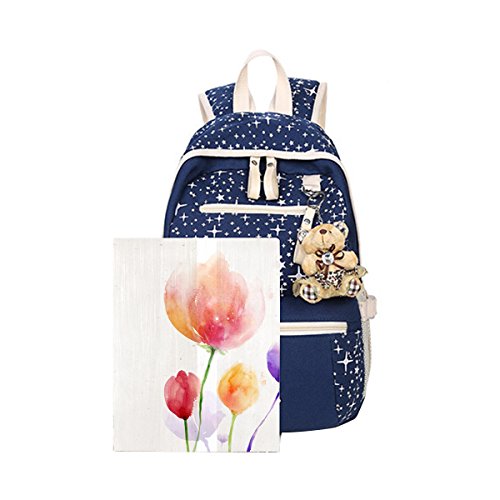 | ABage Girls' Canvas Backpack Set 3 Pieces Patterned Bookbag Laptop School Backpack |