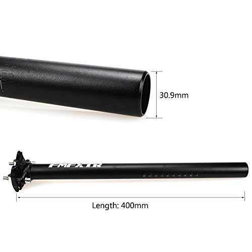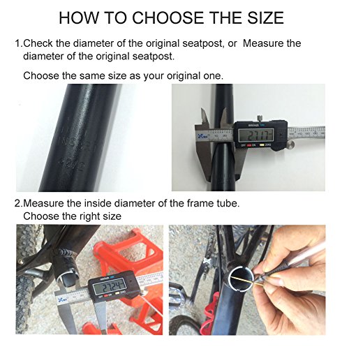 Specification: Diameter:27.2/30.9/31.6mm Length:400mm Weight:27.2 x 400mm(300g),30.9 x 400mm(320g),31.6 x 400mm(340g) Strength: 4.9 levels ultra high strength, maxium of 580lbs Adjust tube length: 0-320mm Use: MTB, BMX, mountain bike, track bike, fixed gear, road bike and so on How to choose the seatpost size: 1.Check the diameter of the original seatpost,choose the same size as the original diameter. 2.Measure the inside diameter of the frame tube.choose the same size as the inside diameter of the frame tube. Package Include: 1 x Bike Seatpost (Length:400mm) 0 |