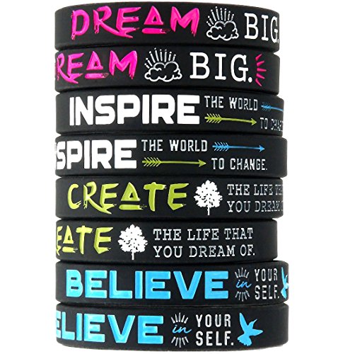 - Bracelets read: "Dream Big," "Inspire the world to change," "Create the life that you dream of," and "Believe in yourself"
