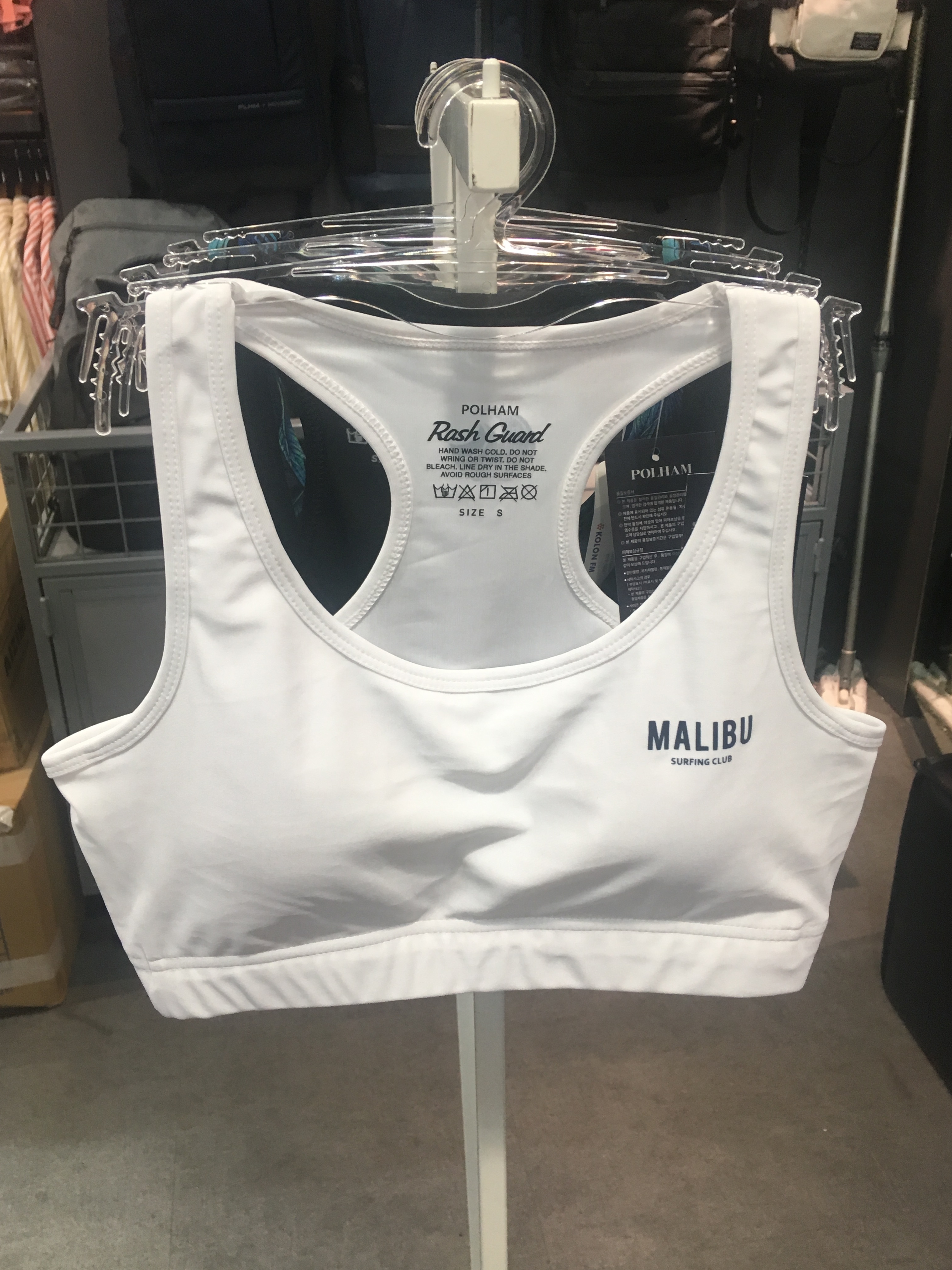 래쉬가드 이너용 또는 휘트니스,요가복 등 단독으로도 사용가능한 래쉬가드 브라탑입니다. 단품으로 착용해도 체형을 잘 잡아주며 착용시 불편함이 없도록 내부에 매쉬처리가 되어 있습니다. 추가적으로 패드를 넣을 수 있도록 패트 홀이 옆 부분에 위치해 있습니다.3color??sizeXS,S,MPBWTBK