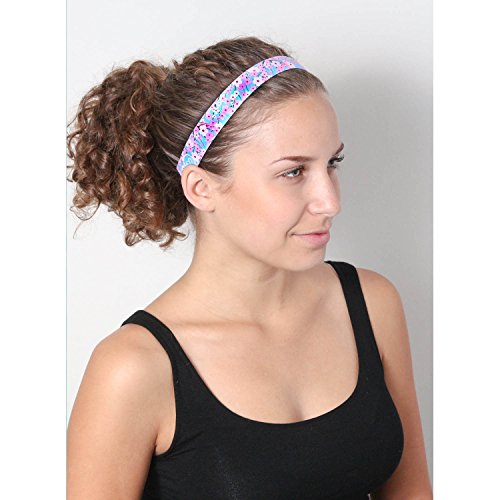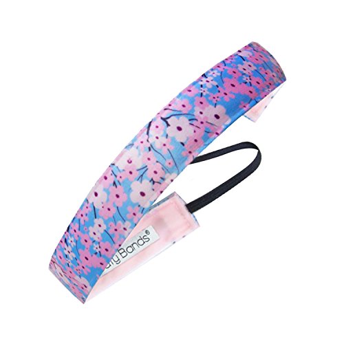 Sweaty Bands – Cherry Blossom Light Pink, Blue – Non-Slip Fitness and Fashion Headband – 1-Inch Wide