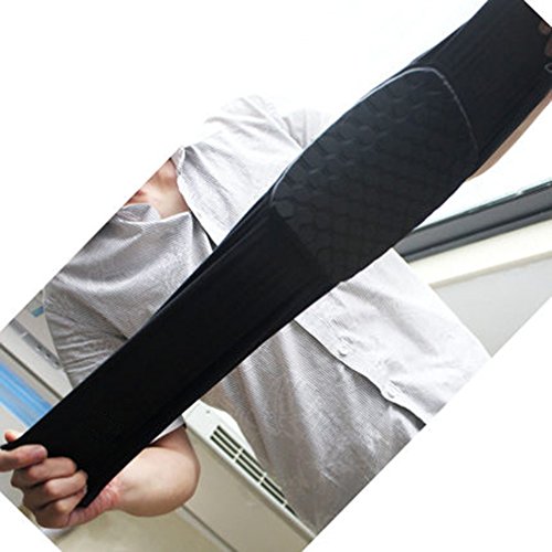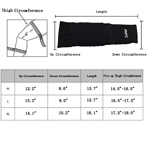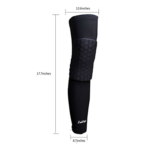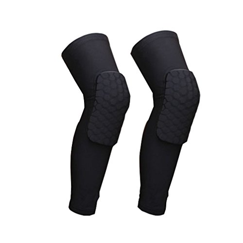 High quality light smooth and elastic material can extend easily and worn suitable. The flexibility to bend knee can make athlete enjoy sporting. Long style knee pad can offer total leg protection to provide sturdiness and stability of knees with a snug fit better. Nice workmanship with honeycomb design gear to prevent leg from crashing and shock, it will be safe during wearing with anti slip band as well, difficult to fall off.