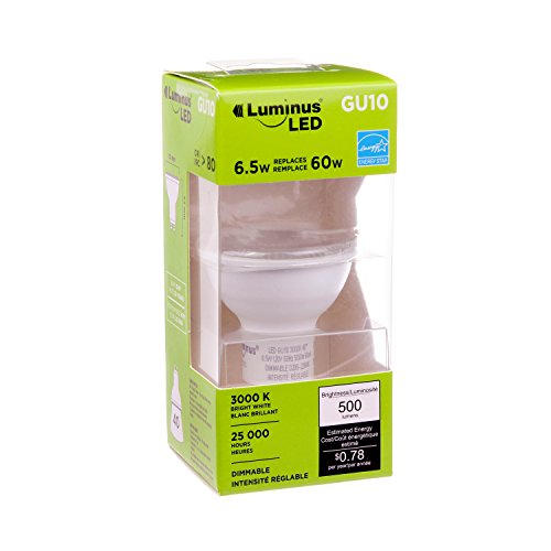 Luminus PLYC2333 Gu10 - 6.5W (60W) 500 Lumens Bright White 3000K Dimmable Led Light Bulb - 6 Pack