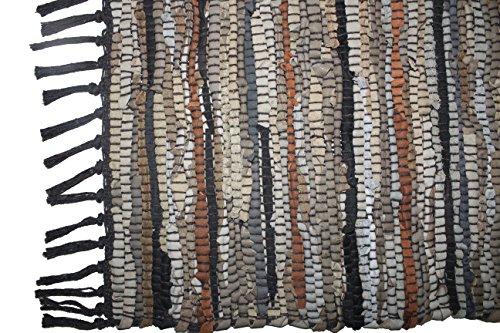 Our 100% Genuine Leather Chindi rug is woven by hand by skilled artisans. Only re-cycled leather is used making it extremely eco-friendly. The handcrafted construction make the rug rugged and long lasting. Its highly versatile and can be used in any room in your home. We recommend the use of a rug pad to prevent slipping.Feature