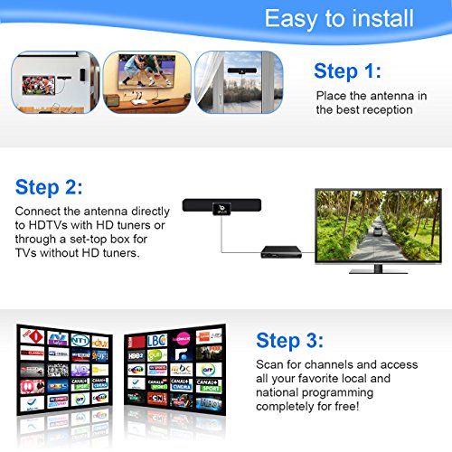 Studio : KiTz Publisher : KiTz Binding : Electronics Product Description KiTz tv antennas provide the maximum content available in your area antennas capable of receiving both VHF and UHF signal from up to 35 miles away. KiTz HDTV indoor antennas advise you to cut the cable and get access to HD programs forever including local news, weather forecast and sitcoms,kids and sports programs,etc.Enjoy crystal clear HDTV shows,720p,1080i,1080p|ATSC available. If your digital TV antenna is not working as expected, try the following tips: 1, Check to make sure you have correctly connected the digital TV antenna to your HDTV or third-party HD receiver. 2, Re-scan for channels: In the TV's setup menu, set the mode to indoor TV antenna or air. Refer to the TV manual for detailed instructions. 3, Reposition the indoor TV antenna in a different location. It is suggested place it higher on a wall or closer to a window. Sometimes moving a few feet can make a difference. 4, keep the TV antenna away from those big power consumption devices interference, such as air conditioner, refrigerator and microwave oven,etc. 5, This is an without amplified HDTV antenna. If a signal cannot be received You can also purchase our up to 50miles amplifier HDTV Antenna.