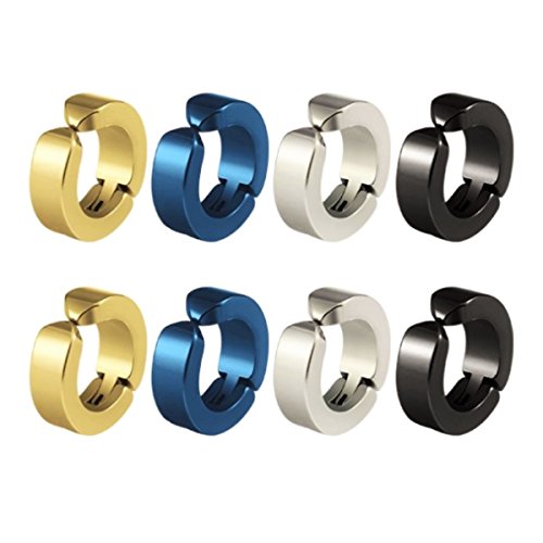 -. Feature : 定番人気のスタイリッシュでシンプルなデザインのステンレス製 フェイクピアスです。人気のカラー 4色セット(シルバー / ブラック / メタリックブルー/ ゴールド) 合計8個 収納ポーチ付きです。男女兼用タイプ。色々なファッションに合わせやすく、ピアス穴がなくても耳元をお洒落に飾ってくれます。 / 派手に目立ち過ぎず丁度よい大きさ☆【ピアスのサイズ】リング直径 13㎜ / 幅 4㎜ / 厚さ 2㎜ 【重さ】2g 【材質】サージカル ステンレス ※アレルギを引き起こしにくい材質です。電気メッキ・高密研磨加工・鏡面仕上げ。落ち着いた輝きで耳元を演出します。 / リングの先端はくちばし状に成形・研磨されていて落ちにくく、長時間付けていても耳が痛くなりにくい設計になっています。また正面側を長めにすることで、フープのつなぎ目が正面から見えにくいように工夫されています。 / 付けるのも簡単!鏡をみながらリングの長い方を正面に向けて、耳に挟むだけのワンタッチ装着です。 / 【メーカー90日間保証】万が一の初期不良・自然使用による破損など。製品に不具合などございましたら、Amazonカスタマーより、お気軽にご連絡下さい。購入後に発行される注文番号にて保証管理を行っております。製品本体に保証書は同梱されておりませんのでご注意ください。万全のアフターサービスでご購入後もサポートいたします。