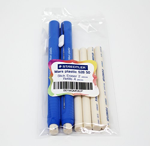 STAEDTLER Stick Eraser Set - Mars plastic 528 50 Propelling Graphite Stick Eraser 2pieces + REFILLS 4pieces / Solid eraser with little residue / Length adjustable body / German brand