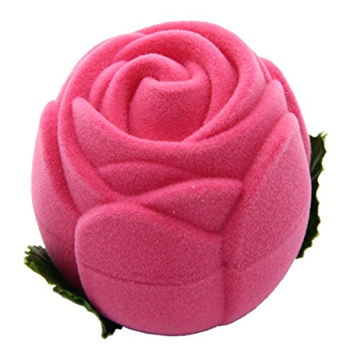 -. Feature : Romantic rose flower shape ring box / For displaying an engagement ring, show your love, more romantic and surP.R.Ising / 4 colors: red, pink, purple, rose / Bottom green leaves decoration / A perfect marriage, valentine, wedding party, birthday, engagement gift