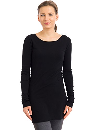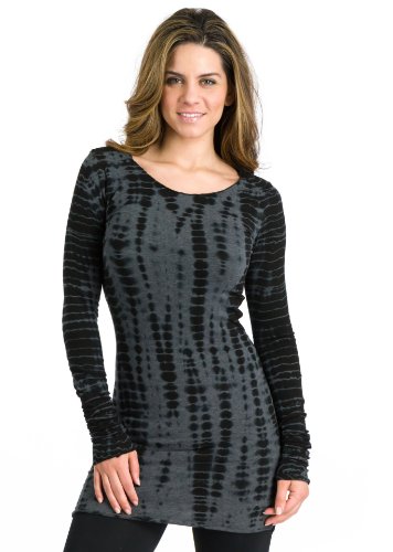Studio : Hard Tail Publisher : Hard Tail Binding : Misc. Product Description Hard Tail is known for their prodigious line of brilliantly hued clothing for both workout and casual wear. The Long Skinny Hard Tail Tee is perfect for layering and may be worn even as a dress. Fitted long sleeve tee Scoop neckline Super soft stretch fabric All-over print Signature Hard Tail logo tab on back Raw edge trim Thigh length (approx. 30 inches long from shoulders) Pre-shrunk May be worn as a long tee or dress Made in the USA 90% Cotton, 10% Lycra 0