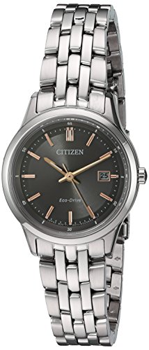 LADIES BRACELET: This classic Citizen Eco-Drive is the perfect choice to see you through a busy day of errands, meetings, and even a casual dinner out. This 3-hand model with grey dial and date indicator is shown in stainless steel with a 28mm case and fold-over clasp with push button.Feature