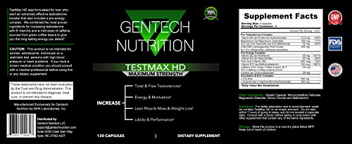 -. Feature : ★ MAX-STRENGTH FORMULA - Absolutely maximizes testosterone levels, inhibits estrogen formation, and reduces DHT formation. Double-blind research studies have proven the ingredients in our formula not only dramatically increase both free and total testosterone, but also reduce cortisol, stress, anxiety, and LDL cholesterol. While increasing strength, lean muscle mass, motivation, libido and sexual performance. / ★ ENERGY COMPLEX - Our P.R.Imary goal when formulating TestMax HD was to create the most effective testosterone booster possible, but we also wanted a formula that gives men the energy to dominate the day. That's why we included an energy complex packed with B vitamins and 150mg of caffeine sourced from green coffee beans to give you a clean boost of energy that lasts all day. / ★ CIRCULATION & NITRIC OXIDE COMPLEX - Nitric oxide relaxes narrowed blood vessels, increasing oxygen and blood flow. Since both micro and macronutrients are transported through your circulatory system. Increasing nitric oxide levels not only improves sexual performance in men, it also optimizes muscle growth, recovery, and power-output. / ★ 200% GUARANTEE - We simply have no doubt that you will love TestMax HD, but if for any reason you don't we will promptly refund you 100%. And if you have had your testosterone levels test before and after taking TestMax HD and don't see a minimum of 25% increase in total testosterone, we will refund you 200%! Yes, we are that confident TestMax HD will deliver results every time! / ★ QUALITY MANUFACTURING- Our supplements are made in the United States in an FDA-approved facility. We are GMP certified, which ensures our supplements are of high quality, and we test every single ingredient for purity and potency. As a result, you can be confident that the amounts of each nutrient listed on the label are exactly what you're getting in each capsule.