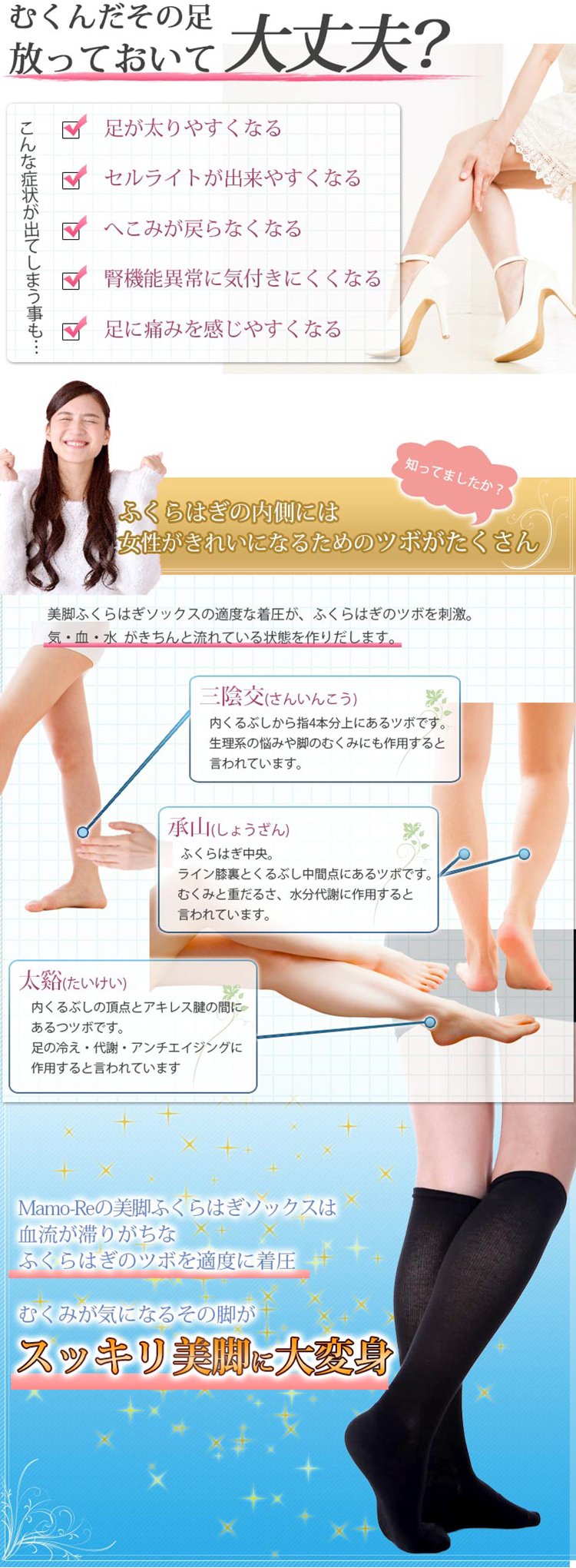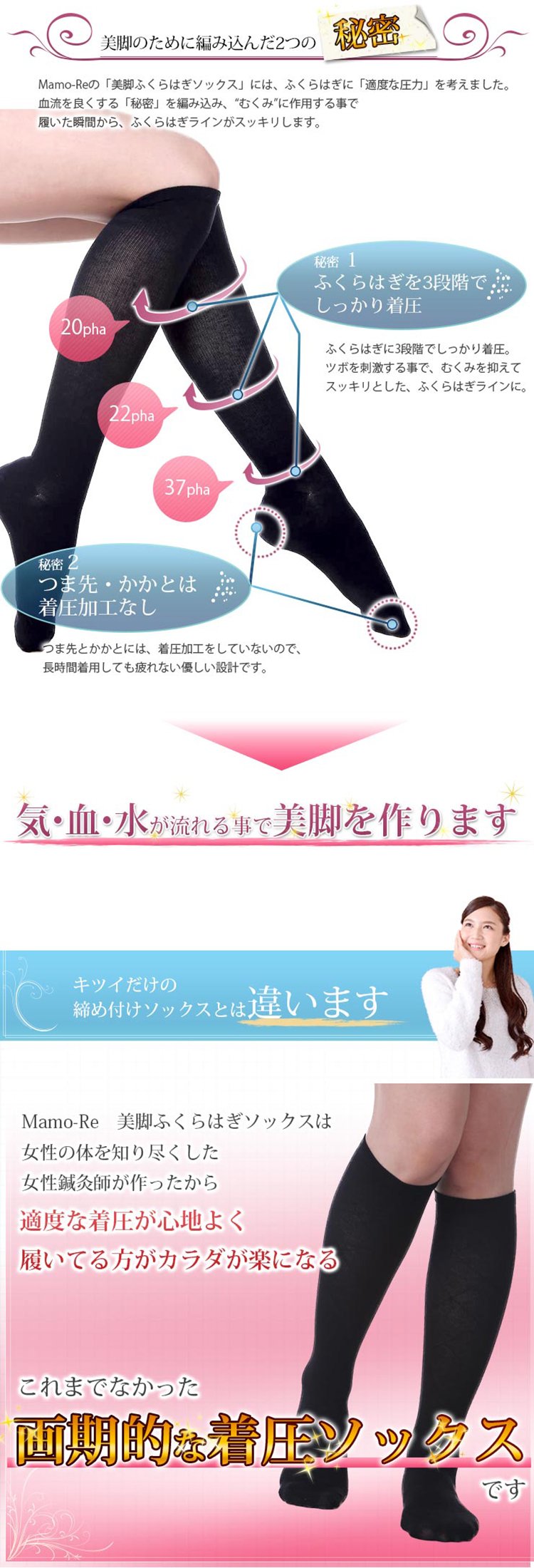 Moderate pressure fitting of legs calves socks stimulates the acupoints of the calves.