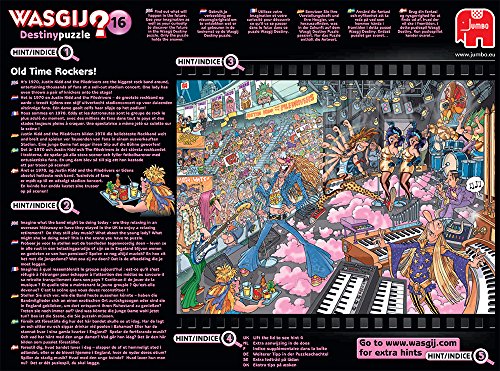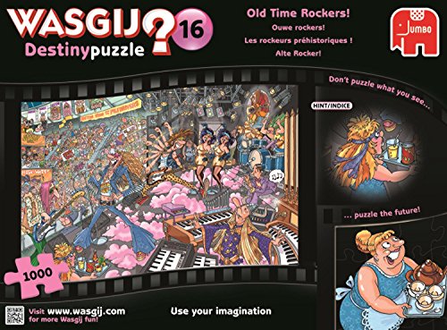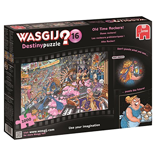 -. Binding : Toy -. Brand : Wasgij -. EAN : 8710126191255 -. Feature : A 1000 piece Wasgij jigsaw puzzle / This Wasgij is a Destiny concept where you have to puzzle how the scene will look in the modern day / The puzzle has been produced using a high quality cardboard / The finished puzzle measures 68x49cm (approximately) / Part of the Wasgij 'Destiny' series -. IsAdultProduct : 0 -. Label : Jumbo Games -. Manufacturer : Jumbo Games -. Model : 19125 -. MPN : 19125 -. PackageQuantity : 1 -. PartNumber : 19125 -. ProductGroup : Toy -. ProductTypeName : TOYS_AND_GAMES -. Publisher : Jumbo Games -. Studio : Jumbo Games -. Title : Wasgij Destiny 16: Old Time Rockers! 1000 Piece Jigsaw Puzzle