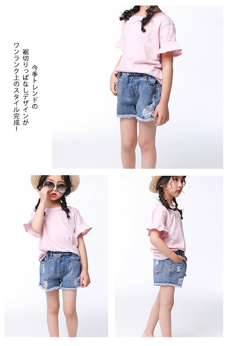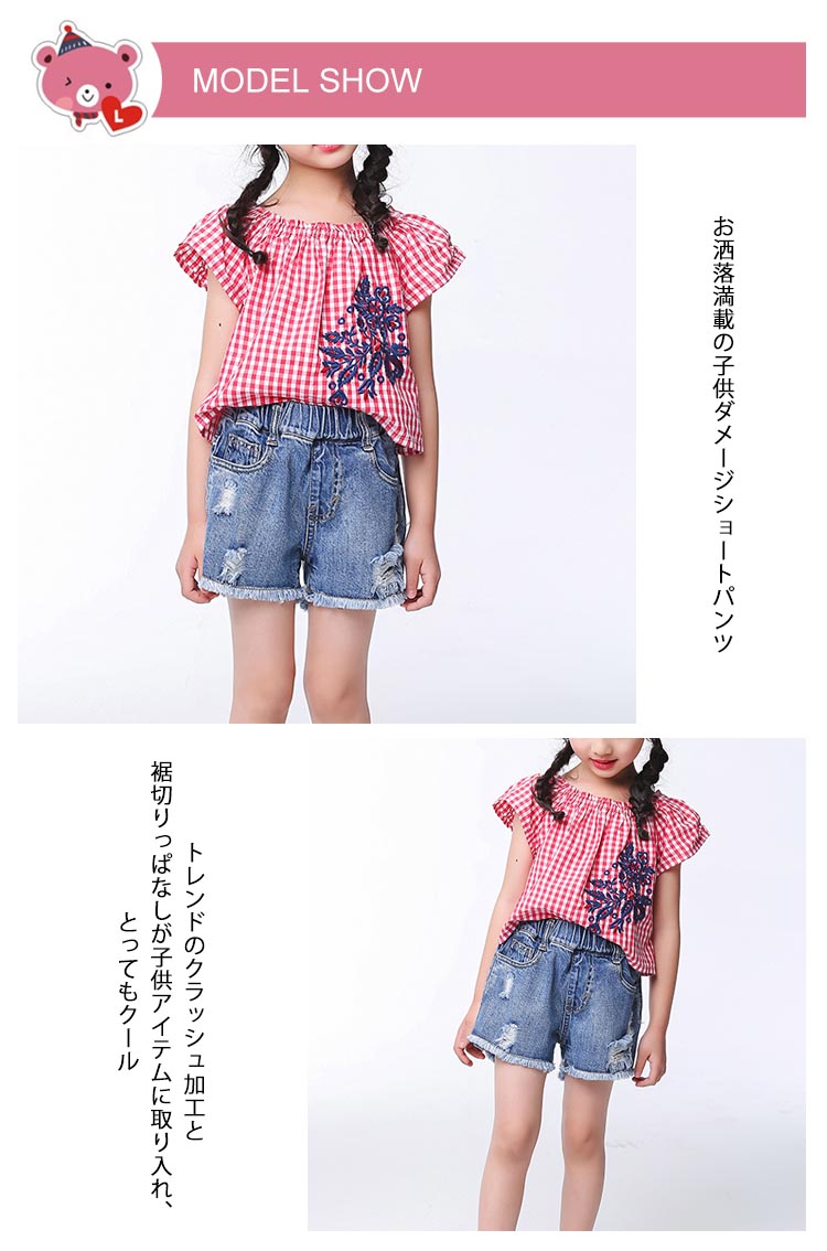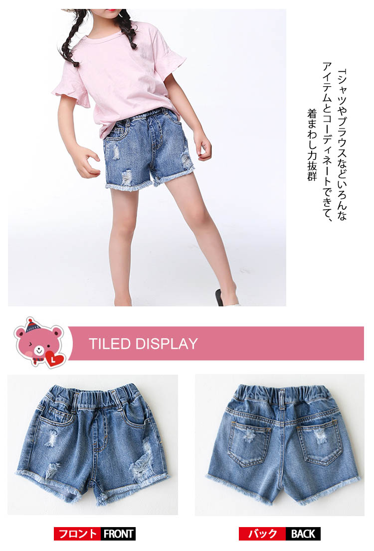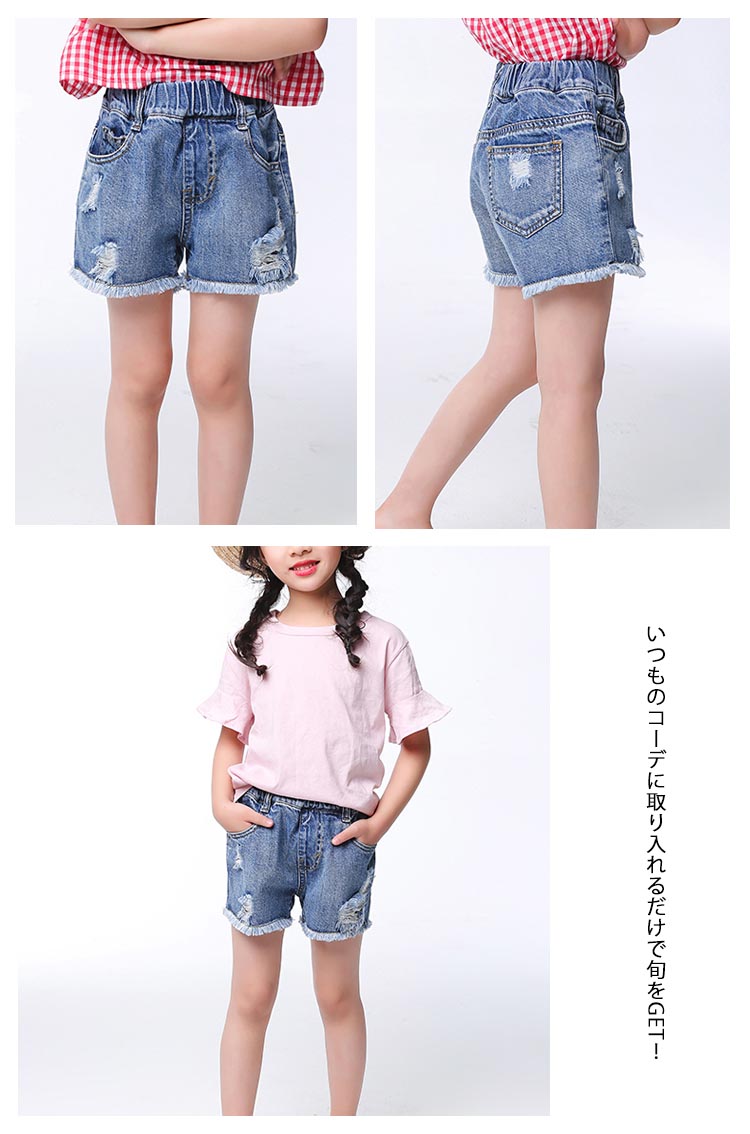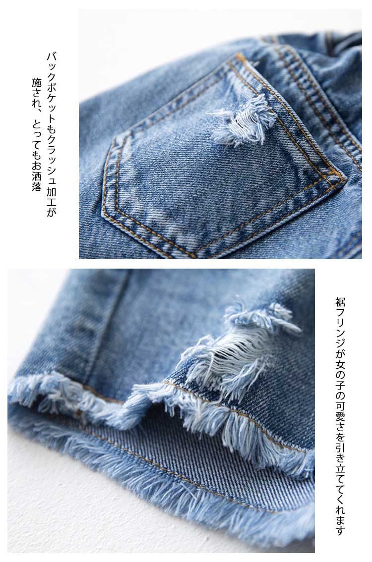| お洒落満載の子供ダメージショートパンツトレンドのクラッシュ加工と裾切りっぱなしが子供アイテムに取り入れ、とってもクールいつものコーデに取り入れるだけで旬をGET!今季トレンドの裾切りっぱなしデザインがワンランク上のスタイル完成!Tシャツやブラウスなどいろんなアイテムとコーディネートできて、着まわし力抜群 | |