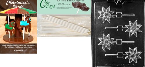 Cybrtrayd 'Daisy Flower Lolly' Fruits and Vegetables Chocolate Candy Mold with 50 4.5-Inch Lollipop Sticks and Chocolatier's Guide