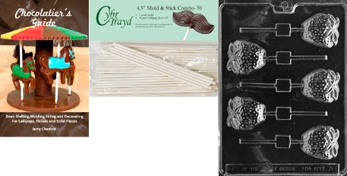 Cybrtrayd 'Strawberry Lolly' Fruits and Vegetables Chocolate Candy Mold with 50 4.5-Inch Lollipop Sticks and Chocolatier's Guide