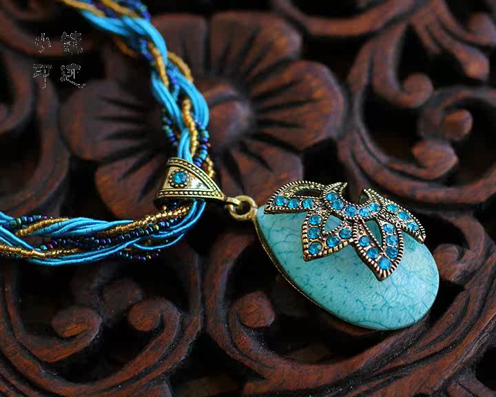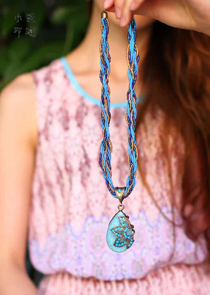Material: artificial gems, beads, copper alloy, imported stones, colored thread