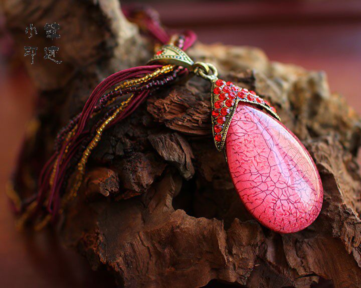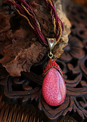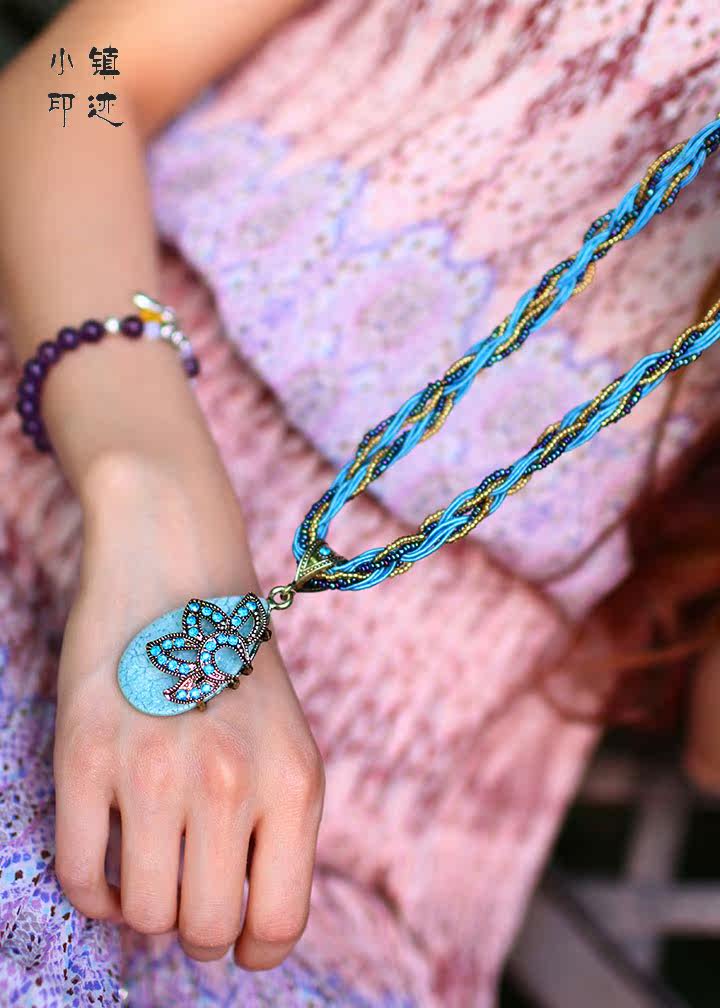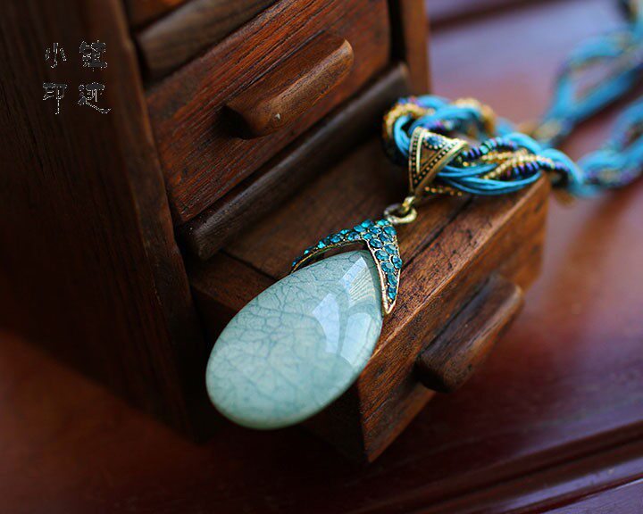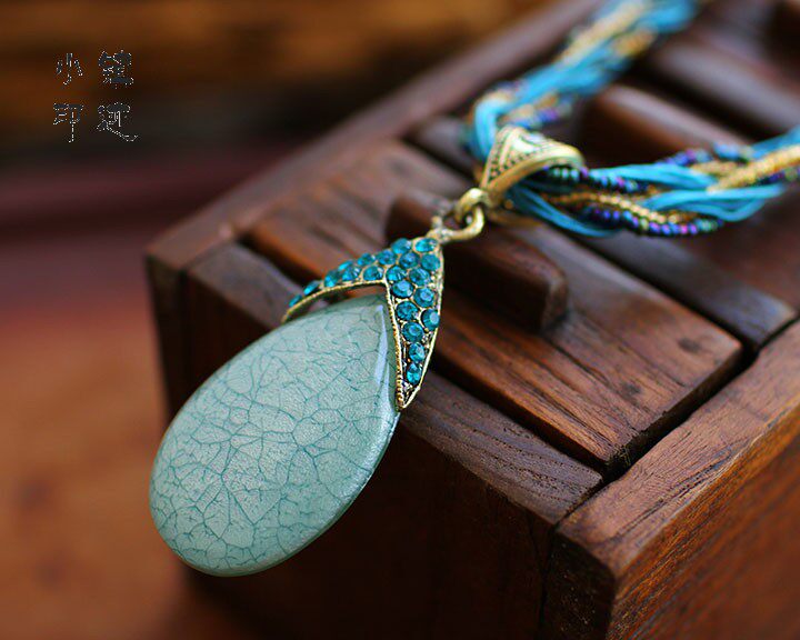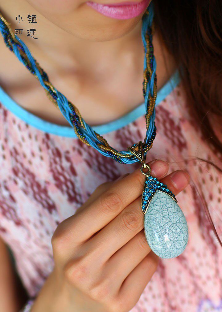 Specifications: Necklace fold about 32cm (including extended chain), ceramic bead diameter of about 5mm, pendant diameter of about 3.2X4.5cm