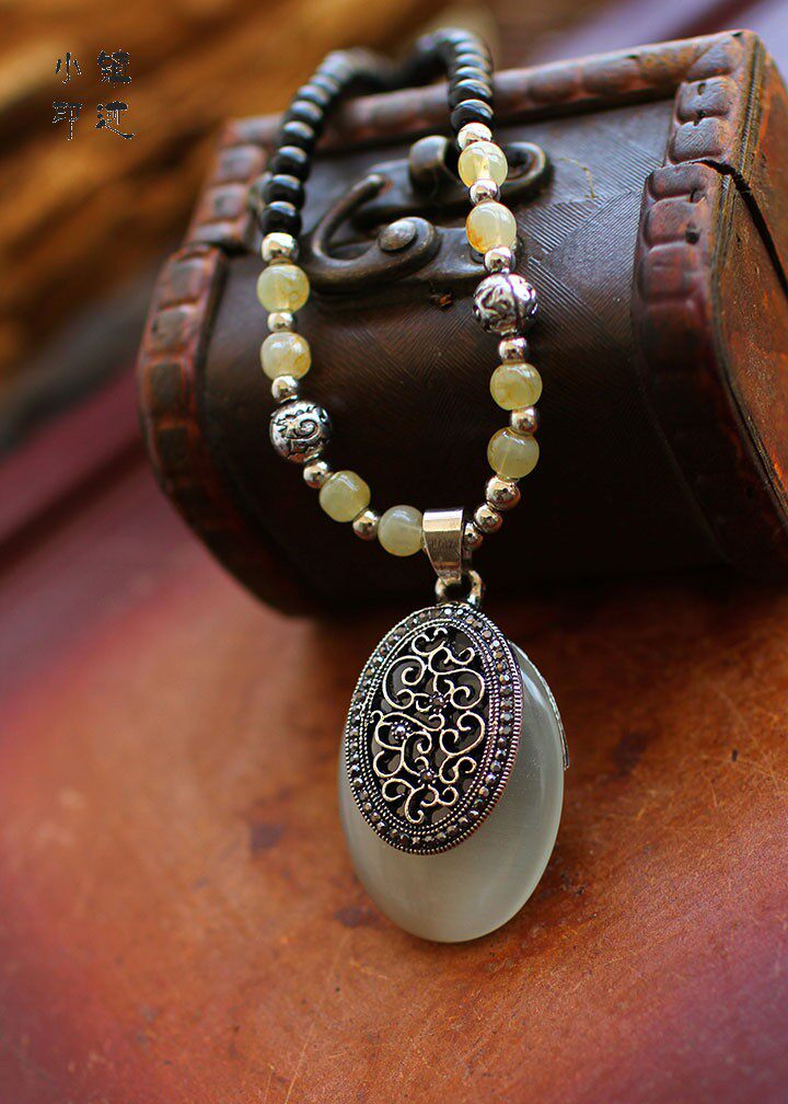 Specifications: Necklace fold about 30cm (including extended chain), ceramic bead diameter of about 5mm, opal pendant diameter of about 3X4cm, alloy platter section diameter of about 2.2X3.1cm
