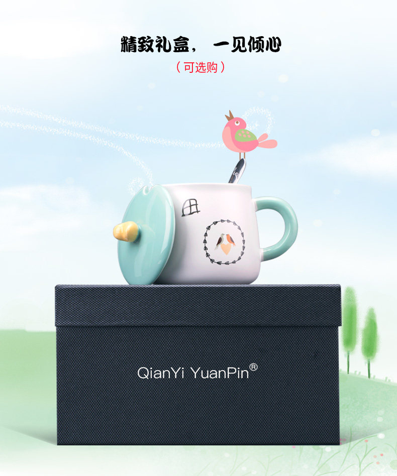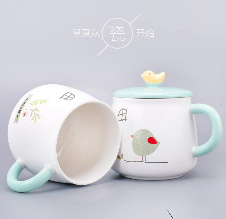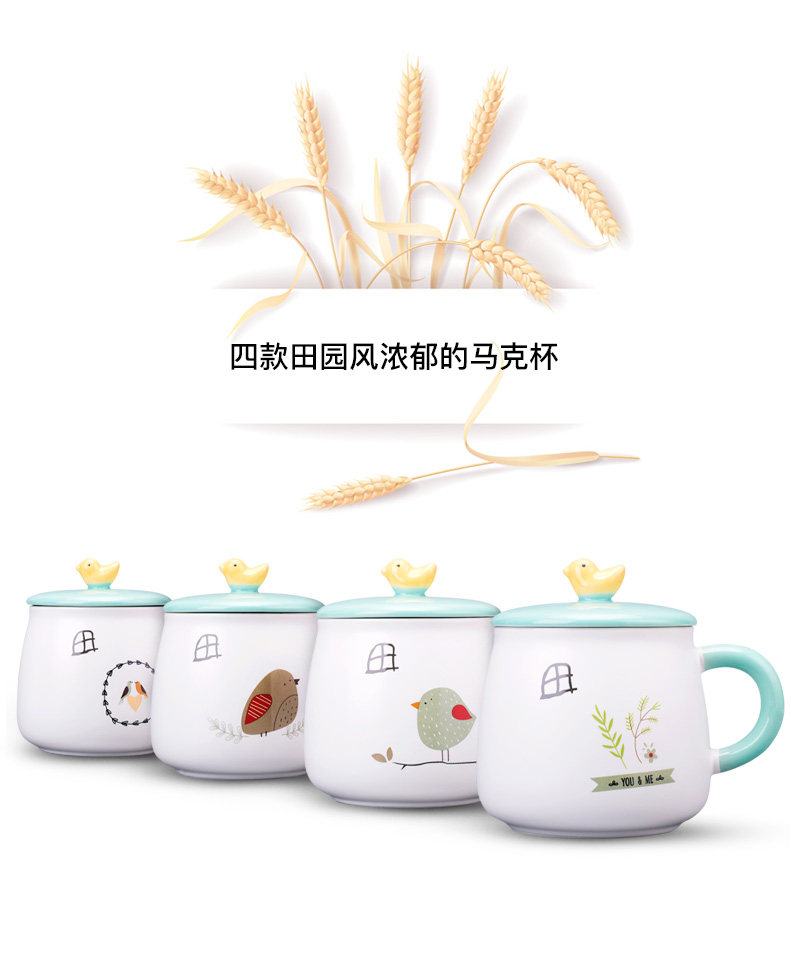 简约创意陶瓷杯子可爱马克杯带盖带勺办公室情侣喝水杯牛奶咖啡杯