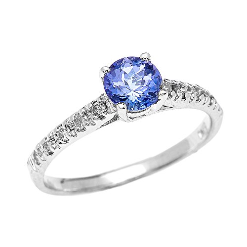 -. Title : Dainty 14k White Gold Diamond and Tanzanite Engagement Proposal Ring