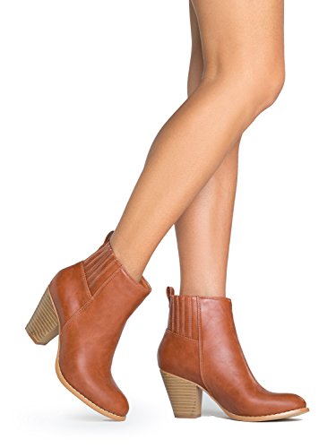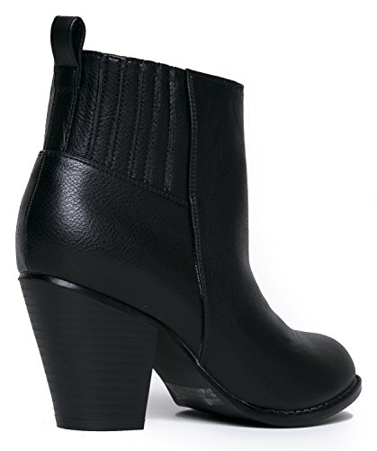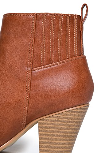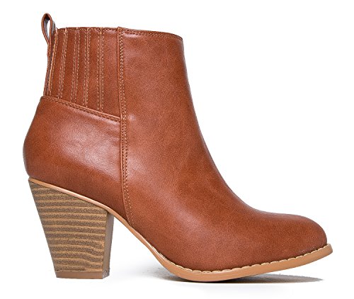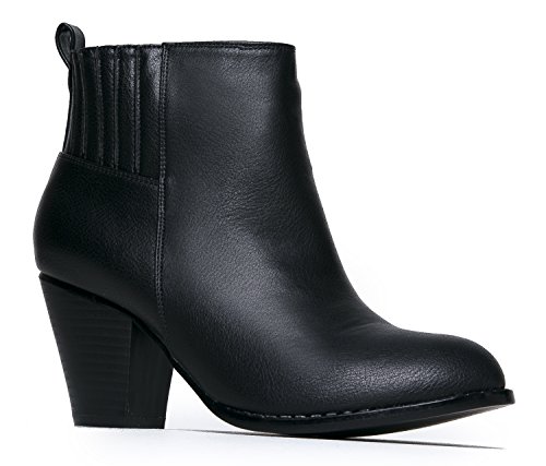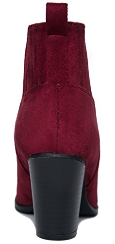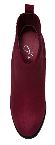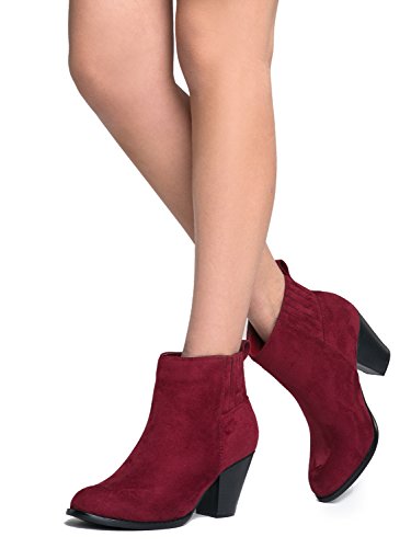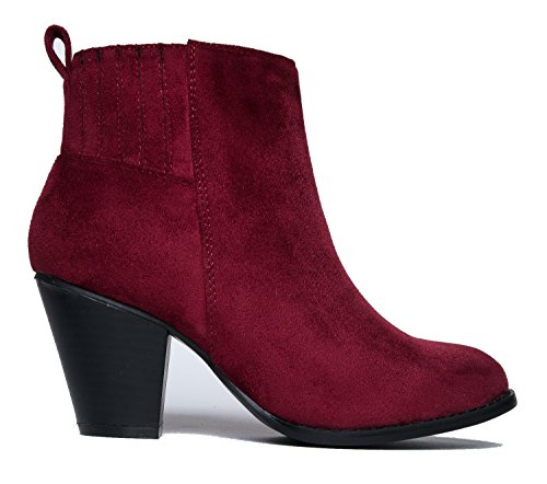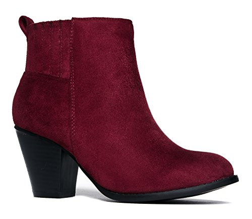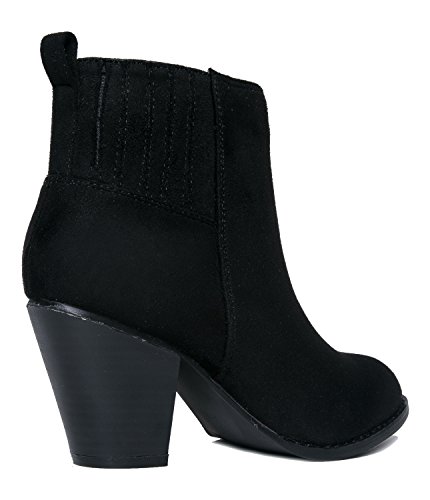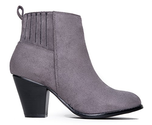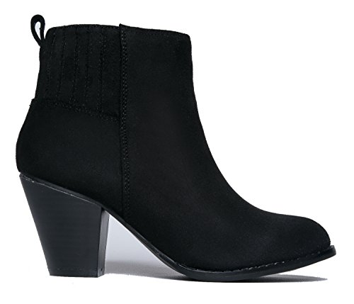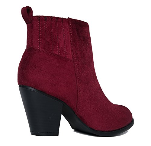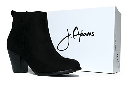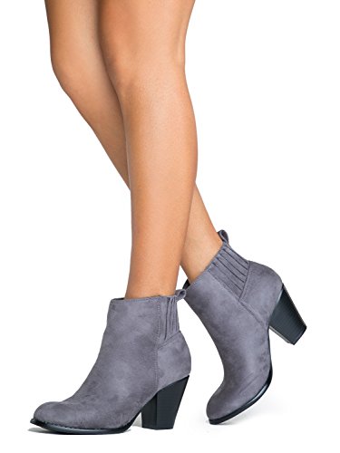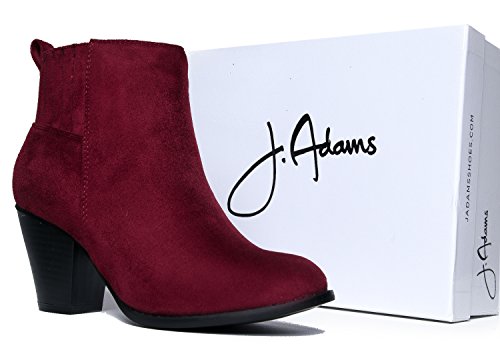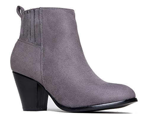 High Heel Suede Ankle Boot - Slip On Stacked Heel Bootie - Comfortable Walking Shoe - Keni by J...