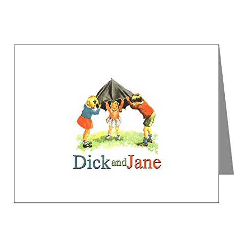 -. Binding : Office Product -. Brand : CafePress -. Feature : Available in your choice of paper stock / High quality, chlorine and acid free matte paper consisting of 30% post consumer waste and 50% total recycled fiber / Twelve point, one-sided glossy paper -. Label : CafePress -. Manufacturer : CafePress -. MPN : 1289134641 -. PackageQuantity : 1 -. PartNumber : 1289134641 -. ProductGroup : Office Product -. ProductTypeName : PAPER_PRODUCT -. Publisher : CafePress -. Studio : CafePress -. Title : CafePress Dick and Jane Note Cards Note Cards Pk of 20