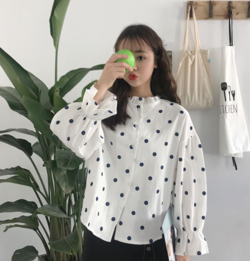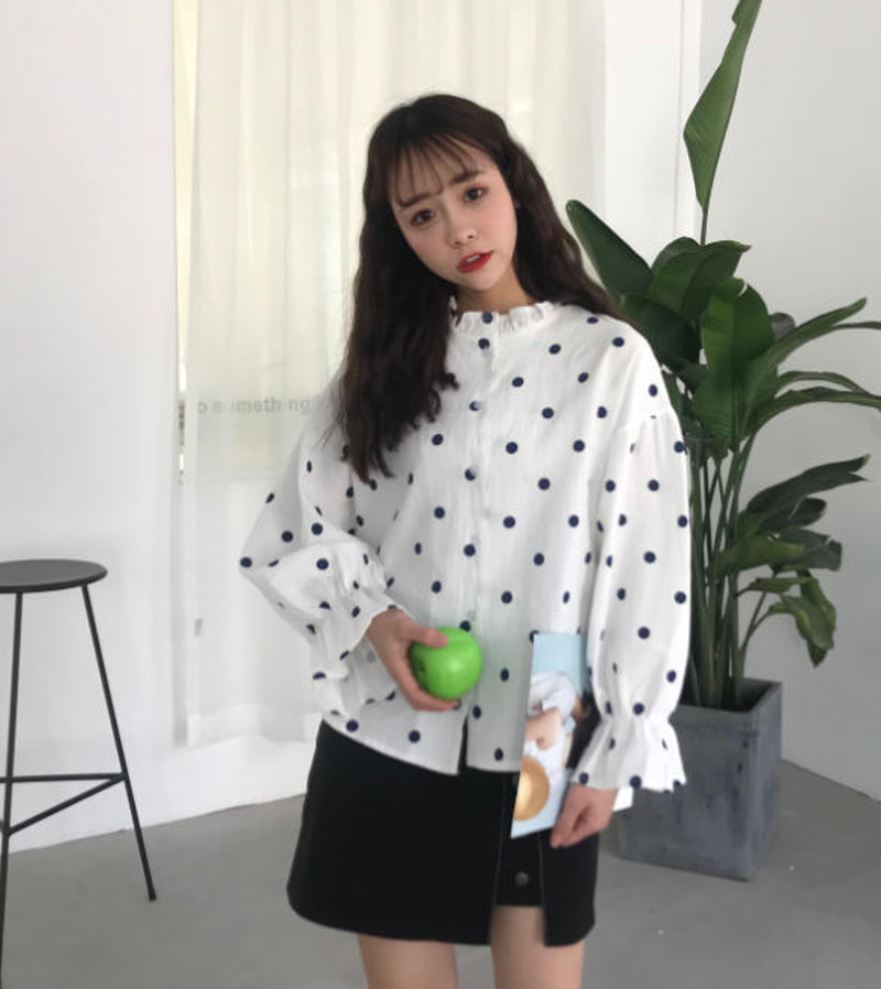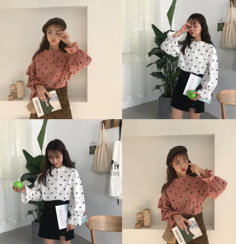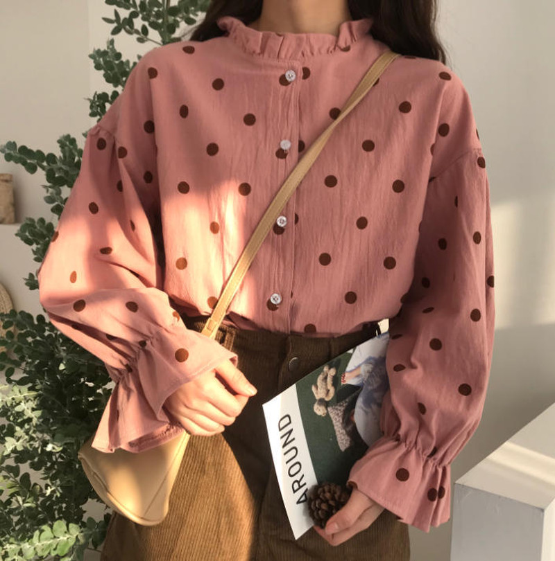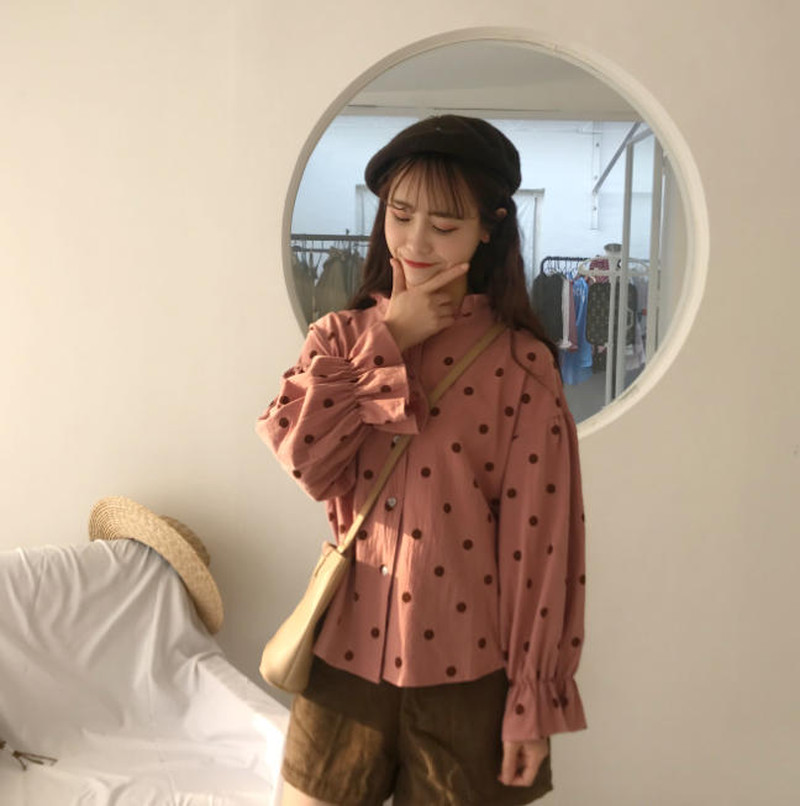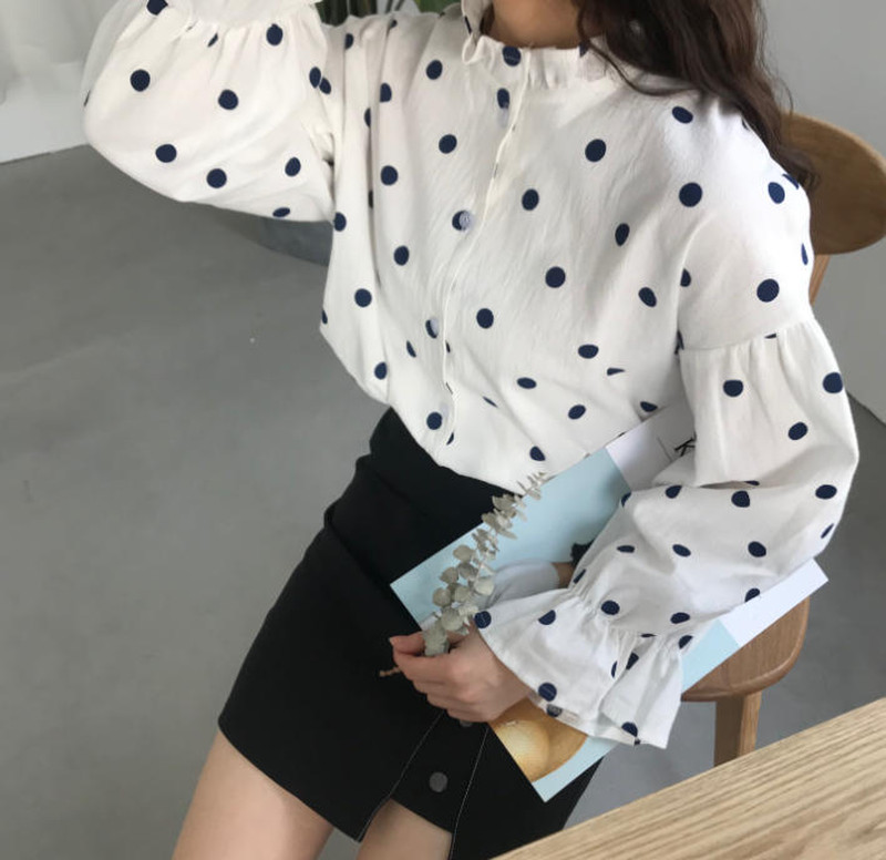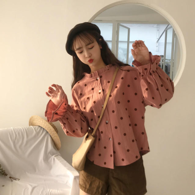 ♢ポイント♢ 大きめのドット柄が目を引くブラウスです。 カジュアルガーリーコーデに合います♪