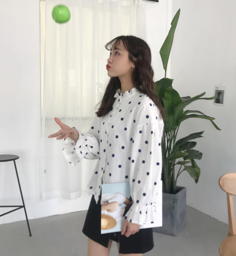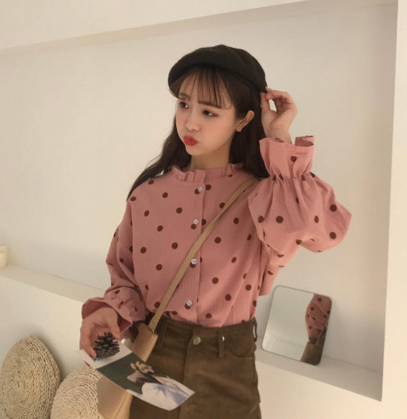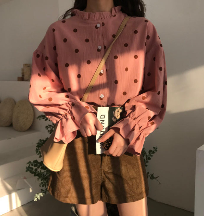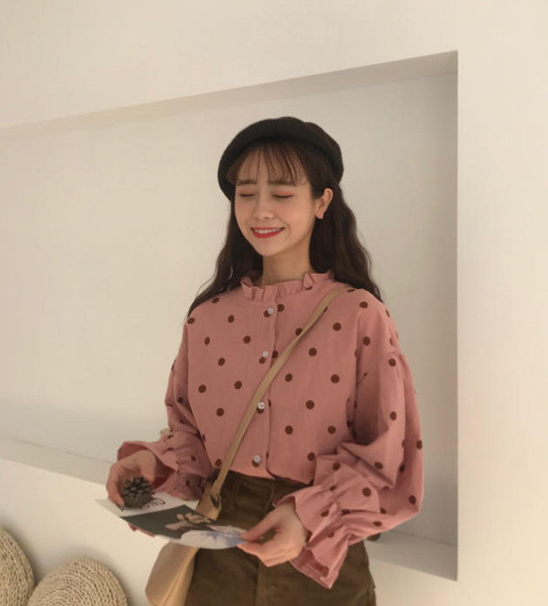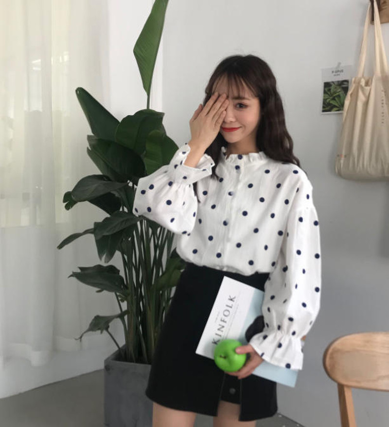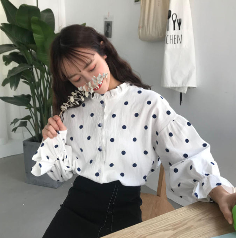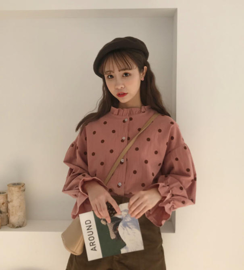 ♢ポイント♢ 大きめのドット柄が目を引くブラウスです。 カジュアルガーリーコーデに合います♪